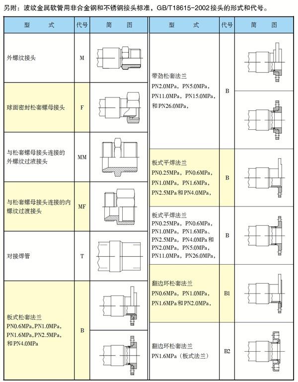 波紋金屬軟管標(biāo)準接頭型式和代號